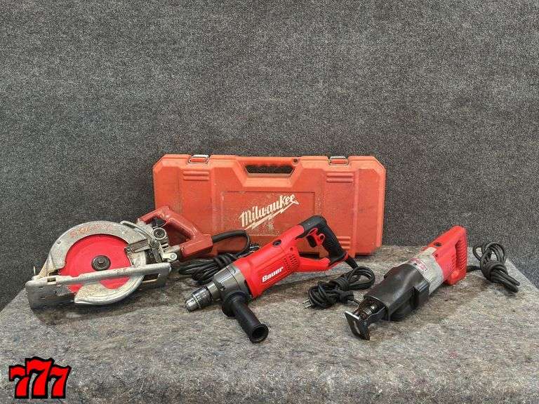 LOT 423 - 1 Skilsaw Mag77, 1 Bauer 1/2” D-Handle Drill & 1 Milwaukee Sawzall
