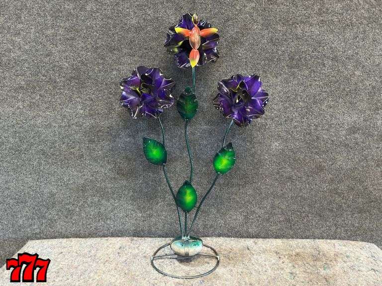 LOT 17 - 31” Tall Purple Metal Flower Stand w/ Hummingbird