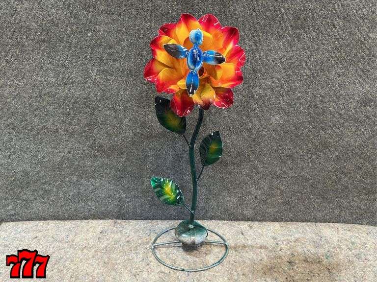 LOT 11 - 26” Tall Yellow/Pink Metal Flower Stand w/ Hummingbird