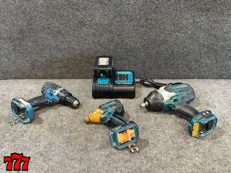 LOT 336 - 1 Makita 1/2” Impact Wrench, (1) 1/2” Hammer Driver Drill, (1) Impact Driver, 1 Makita Charger & 1 Battery