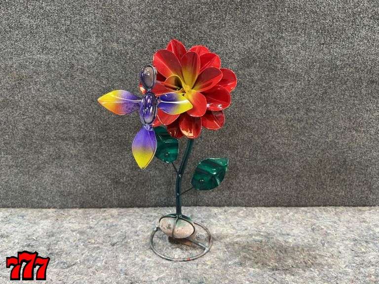LOT 3 - 18” Tall Red Metal Flower Stand w/ Hummingbird