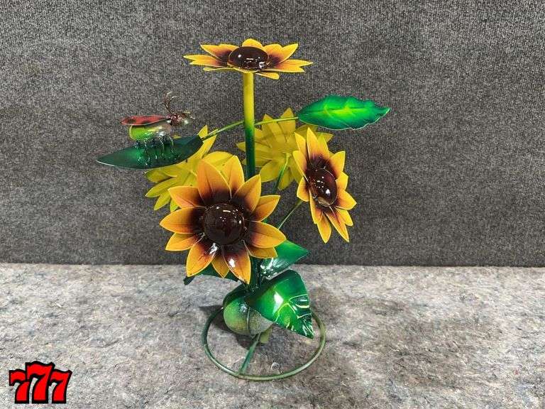 LOT 8 - 17” Tall Metal Sunflower Stand w/ Ladybug