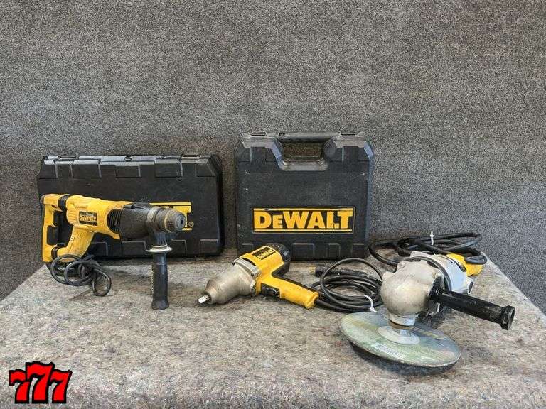 LOT 424A - 1 DeWalt Rotary Hammer, 1 Impact Wrench & 1 Angle Sander
